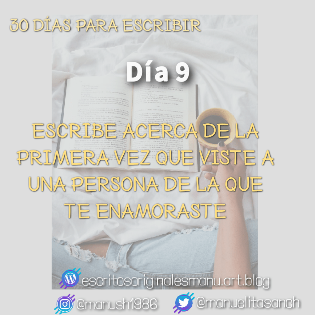 Todos recordamos ese momento, cuando lo/la vimos por primera vez, así que hoy nos toca ponernos románticos (?). O no. Hay amores que son a primera vista y otros a décima. Buscá ese día en tu cabeza y tratá de revivirlo. ¿Dónde estabas? ¿Por qué estabas ahí? ¿Cómo era el clima? ¿Era de día o de noche? ¿Cómo fue que se cruzaron? ¿Cuál fue el primer pensamiento que tuviste? ¿Qué te dijo? ¿Qué le dijiste? ¿Qué fue lo que te llamó la atención? ¿Qué pasaba a tu alrededor? ¿Cómo estaban vestidos? Como dije en otro ejercicio, la escritura sirve para guardar momentos en cajitas, así que condensá ese primer encuentro y describilo lo mejor que puedas, como si quisieras mantenerlo en el presente para siempre.