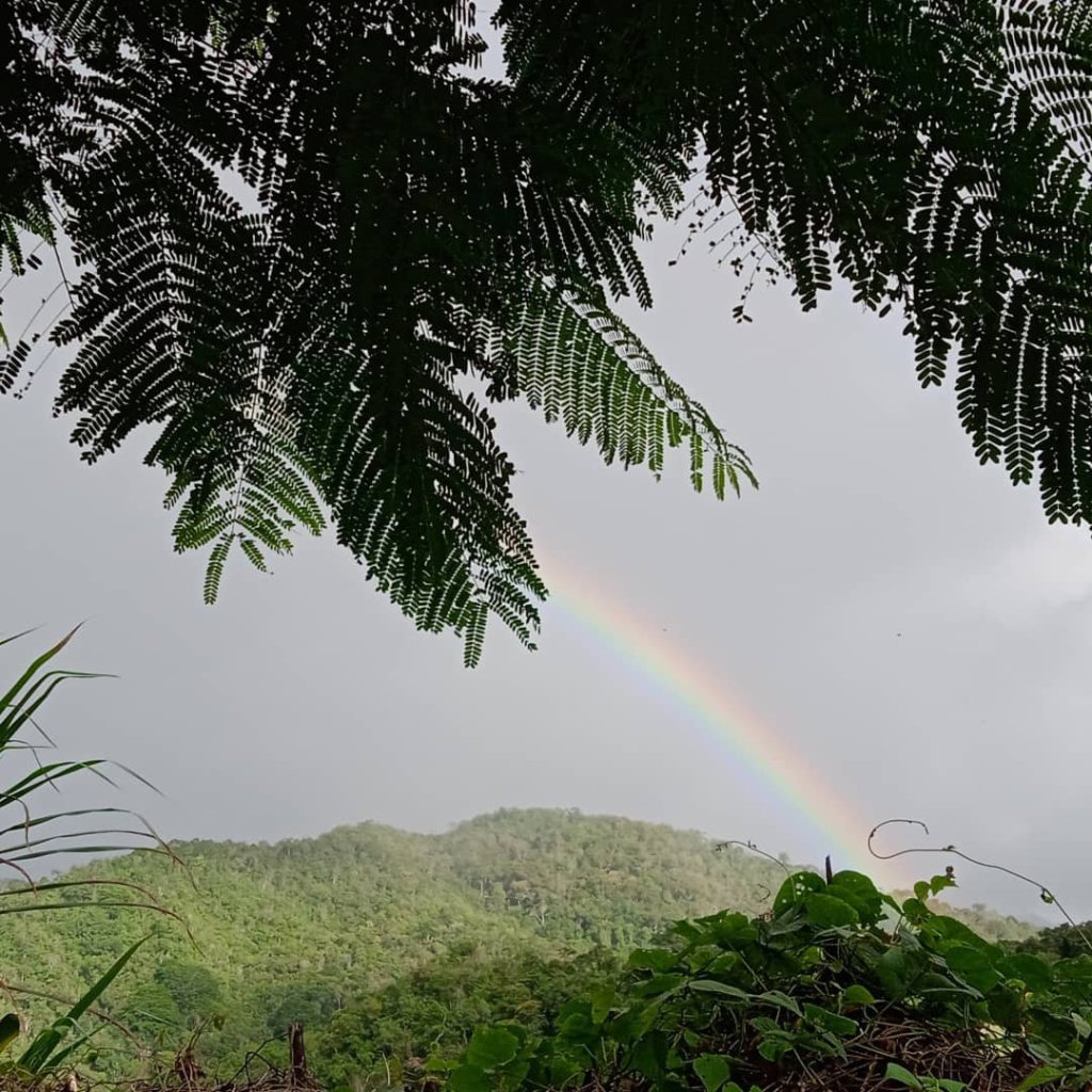 Aquella mañana, como cualquier otra, el sol salía para iluminar el día y llenarlo de calor y alegría, pero las nubes estaban muy tristes, tan cargadas de tantas emociones y preocupaciones que no pudieron soportarlo más y sus lágrimas comenzaron a caer suavemente sobre las montañas, el sol que sabía cómo se sentían las nubes decidió darles una sorpresa y enfocó sus rayos justo en la dirección en la que estaban cayendo las gotas en forma de una fina llovizna, al pasar por ellas la luz del sol ante el prisma reflejó muchos colores y desde las montañas hasta el cielo iluminó un hermoso arcoiris, las nubes al verlo quedaron sorprendidas y poco a poco dejaron de llorar, agradeciendo al sol por aquella hermosa sorpresa que les había hecho tan bien.