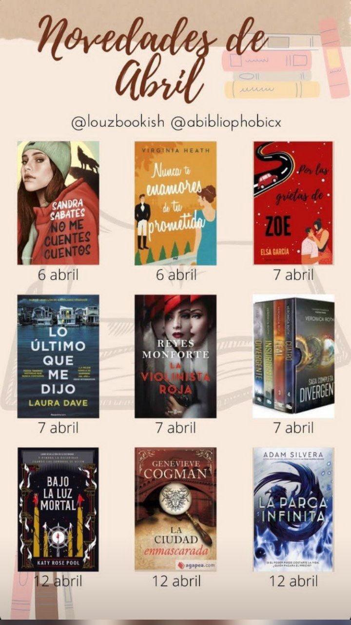 Novedades literarias mes de abril Publicado porEscritosoriginalesmanu10 Abr, PMPublicado en BlogEtiquetas:abril, novedades literarias Novedades literarias mes de abril Comparte esto: Compartir en X (Se abre en una ventana nueva) X Compartir en Telegram (Se abre en una ventana nueva) Telegram Compartir en WhatsApp (Se abre en una ventana nueva) WhatsApp Compartir en LinkedIn (Se abre en una ventana nueva) LinkedIn Enviar un enlace a un amigo por correo electrónico (Se abre en una ventana nueva) Correo electrónico Me gusta Cargando... Publicado por Escritosoriginalesmanu Hija, esposa, madre, docente de ❤ escritora en proceso, amante de la naturaleza, confío en un cambio intrínseco de la humanidad Ver más entradas