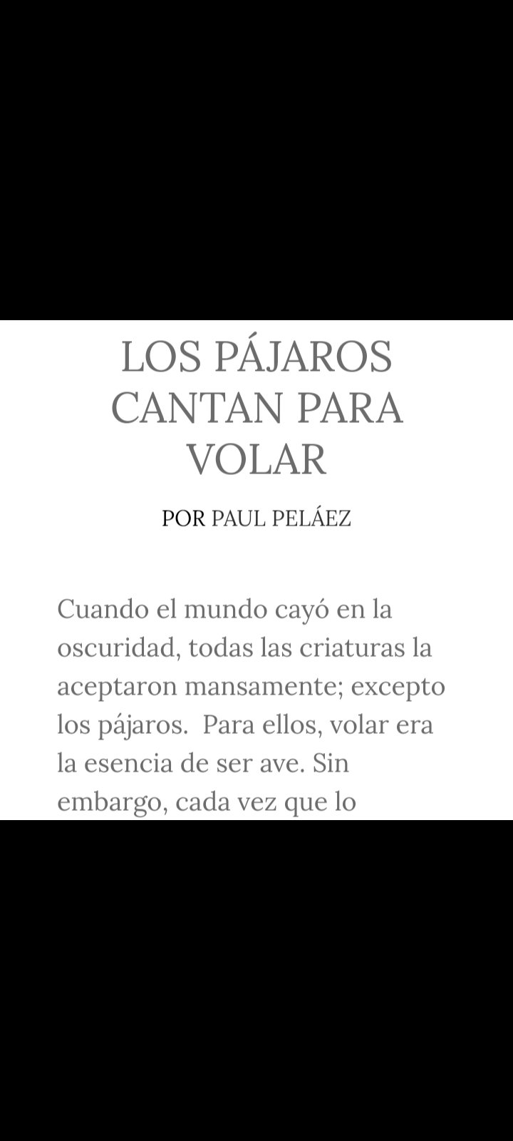 En este enlace encontrarán el cuento corto «los pájaros cantan para volar» Por aquí espero sus comentarios al respecto. Ya que la interpretación de este cuento puede llegar a ser muy dober