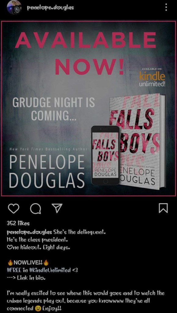 Coincidentemente, en febrero Penélope Douglas publico el primer libro, Fall Boys, de su nueva serie Hellbent.